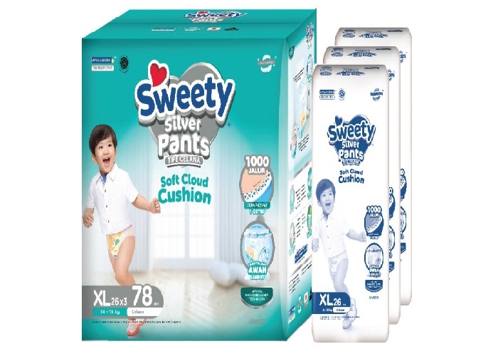 Popok anak yang mempunyai daya serap cepat. •Sistem double Leak Guard mencegah kebocoran samping.dibuat dengan desain yang sesuai dengan bentuk tubuh si kecil disertai karet lembut untuk mencegah ruam kulit kemerahan. •Inovasi lock system juga diterapkan pada popok celana ini agar pipis si kecil dapat menyerap dengan cepat dan tetap kering serta higienis untuk mereka. • Lapisan atasnya juga dilengkapi dengan ekstrak lidah buaya agar kulit dak teriritasi dan kering, tersedia ukuran NB, S,M,L,XL,XXL